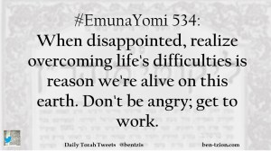 #EmunaYomi 534: When disappointed, realize overcoming life’s difficulties is reason we’re alive on this earth. Don’t be angry; get to work.