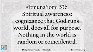 #EmunaYomi 536: Spiritual awareness: cognizance that God runs world, does all for purpose. Nothing in the world is random or coincidental.