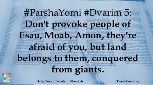 #ParshaYomi #Dvarim 5: Don’t provoke people of Esau, Moab, Amon, they’re afraid of you, but land belongs to them, conquered from giants.