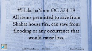 #HalachaYomi OC 334:18 All items permitted to save from Shabat house fire, can save from flooding or any occurrence that would cause loss.