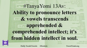 #TanyaYomi 13Av: Ability to pronounce letters & vowels transcends apprehended & comprehended intellect; it’s from hidden intellect in soul.
