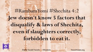 #RambamYomi #Shechita 4:2 Jew doesn’t know 5 factors that disqualify & laws of Shechita, even if slaughters correctly, forbidden to eat it.
