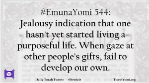#EmunaYomi 544: Jealousy indication that one hasn’t yet started living a purposeful life. When gaze at other people’s gifts, fail to develop our own.