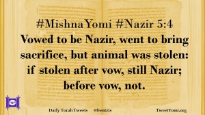#MishnaYomi #Nazir 5:4 Vowed to be Nazir, went to bring sacrifice, but animal was stolen: if stolen after vow, still Nazir; before vow, not.