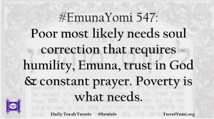 #EmunaYomi 547: Poor most likely needs soul correction that requires humility, Emuna, trust in God & constant prayer. Poverty is what needs.