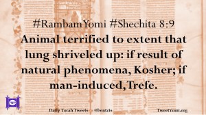 #RambamYomi #Shechita 8:9 Animal terrified to extent that lung shriveled up: if result of natural phenomena, Kosher; if man-induced, Trefe.