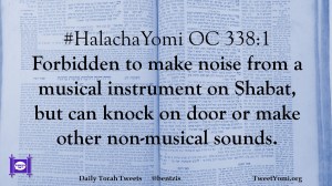 #HalachaYomi OC 338:1 Forbidden to make noise from a musical instrument on Shabat, but can knock on door or make other non-musical sounds.