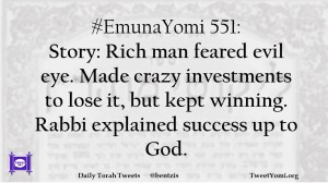 #EmunaYomi 551: Story: Rich man feared evil eye. Made crazy investments to lose it, but kept winning. Rabbi explained success up to God.