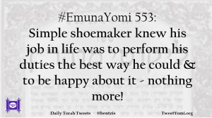 #EmunaYomi 553: Simple shoemaker knew his job in life was to perform his duties the best way he could & to be happy about it – nothing more!