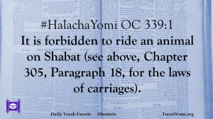 #HalachaYomi OC 339:1 It is forbidden to ride an animal on Shabat (see above, Chapter 305, Paragraph 18, for the laws of carriages).