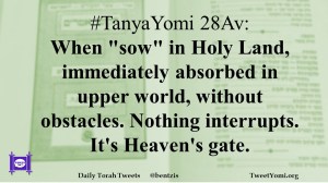#TanyaYomi 28Av: When “sow” in Holy Land, immediately absorbed in upper world, without obstacles. Nothing interrupts. It’s Heaven’s gate.