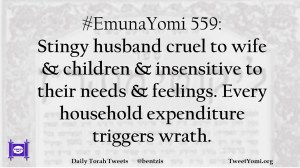 #EmunaYomi 559: Stingy husband cruel to wife & children & insensitive to their needs & feelings. Every household expenditure triggers wrath.