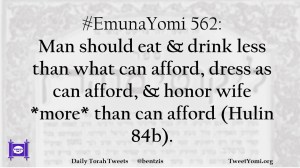 #EmunaYomi 562: Man should eat & drink less than what can afford, dress as can afford, & honor wife *more* than can afford (Hulin 84b).