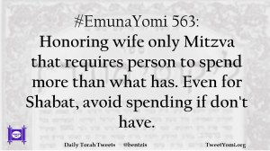 #EmunaYomi 563: Honoring wife only Mitzva that requires person to spend more than what has. Even for Shabat, avoid spending if don’t have.