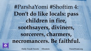 #ParshaYomi #Shoftim 4: Don’t do like locals: pass children in fire, soothsayers, diviners, sorcerers, charmers, necromancers. Be faithful.