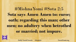 #MishnaYomi #Sota 2:5 Sota says Amen Amen to: curse; oath; regarding this man; other men; no adultery when betrothed or married; not impure.