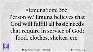#EmunaYomi 566: Person w/ Emuna believes that God will fulfill all basic needs that require in service of God: food, clothes, shelter, etc.