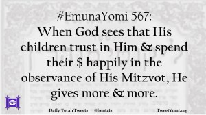 #EmunaYomi 567: When God sees that His children trust in Him & spend their $ happily in the observance of His Mitzvot, He gives more & more.