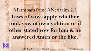 #RambamYomi #Nedarim 2:1 Laws of vows apply whether took vow of own volition or if other stated vow for him & he answered Amen or the like.
