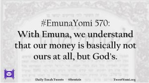 EmunaYomi #EmunaYomi 570 Date: August 21, 2018Author: bentzis #EmunaYomi 570: With Emuna, we understand that our money is basically not ours at all, but God’s. Share this: Share on X (Opens in new window) X Share on Facebook (Opens in new window) Facebook Like Loading... Related
