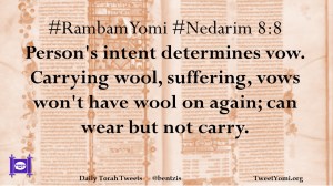 #RambamYomi #Nedarim 8:8 Person’s intent determines vow. Carrying wool, suffering, vows won’t have wool on again; can wear but not carry.