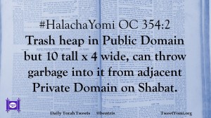 #HalachaYomi OC 354:2 Trash heap in Public Domain but 10 tall x 4 wide, can throw garbage into it from adjacent Private Domain on Shabat.