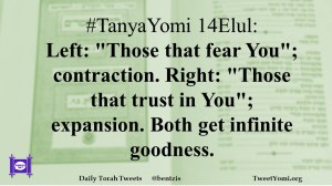 #TanyaYomi 14Elul: Left: “Those that fear You”; contraction. Right: “Those that trust in You”; expansion. Both get infinite goodness.