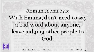 EmunaYomi #EmunaYomi 575 Date: August 26, 2018Author: bentzis #EmunaYomi 575: With Emuna, don’t need to say a bad word about anyone; leave judging other people to God. Share this: Share on X (Opens in new window) X Share on Facebook (Opens in new window) Facebook Like Loading... Related