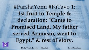 #ParshaYomi #KiTavo 1: 1st fruit to Temple & declaration: “Came to Promised Land. My father served Aramean, went to Egypt,” & rest of story.