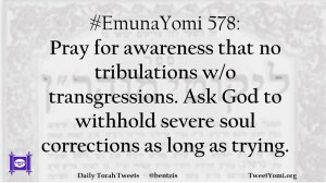 #EmunaYomi 578: Pray for awareness that no tribulations w/o transgressions. Ask God to withhold severe soul corrections as long as trying.