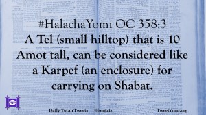 #HalachaYomi OC 358:3 A Tel (small hilltop) that is 10 Amot tall, can be considered like a Karpef (an enclosure) for carrying on Shabat.