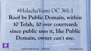 #HalachaYomi OC 361:1 Roof by Public Domain, within 10 Tefah, 10 over courtyard; since public uses it, like Public Domain, owner can’t use.