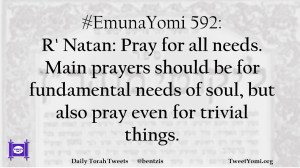 #EmunaYomi 592: R’ Natan: Pray for all needs. Main prayers should be for fundamental needs of soul, but also pray even for trivial things.