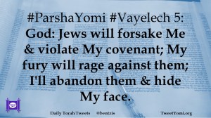 #ParshaYomi #Vayelech 5: God: Jews will forsake Me & violate My covenant; My fury will rage against them; I’ll abandon them & hide My face.