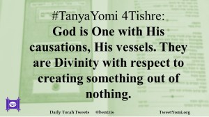 #TanyaYomi 4Tishre: God is One with His causations, His vessels. They are Divinity with respect to creating something out of nothing.