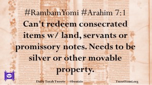#RambamYomi #Arahim 7:1 Can’t redeem consecrated items w/ land, servants or promissory notes. Needs to be silver or other movable property.