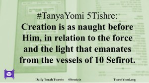 #TanyaYomi 5Tishre: Creation is as naught before Him, in relation to the force and the light that emanates from the vessels of 10 Sefirot.