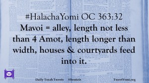 #HalachaYomi OC 363:32 Mavoi = alley, length not less than 4 Amot, length longer than width, houses & courtyards feed into it.