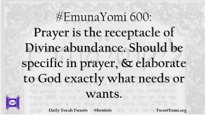 #EmunaYomi 600: Prayer is the receptacle of Divine abundance. Should be specific in prayer, & elaborate to God exactly what needs or wants.