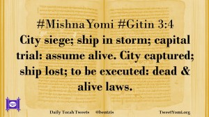 #MishnaYomi #Gitin 3:4 City siege; ship in storm; capital trial: assume alive. City captured; ship lost; to be executed: dead & alive laws.