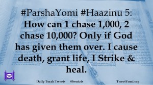 #ParshaYomi #Haazinu 5: How can 1 chase 1,000, 2 chase 10,000? Only if God has given them over. I cause death, grant life, I Strike & heal.