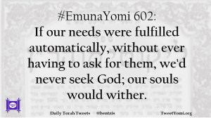 #EmunaYomi 602: If our needs were fulfilled automatically, without ever having to ask for them, we’d never seek God; our souls would wither.