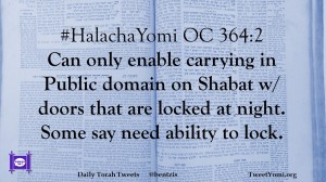 #HalachaYomi OC 364:2 Can only enable carrying in Public domain on Shabat w/ doors that are locked at night. Some say need ability to lock.