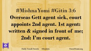 #MishnaYomi #Gitin 3:6 Overseas Gett agent sick, court appoints 2nd agent. 1st agent: written & signed in front of me; 2nd: I’m court agent.