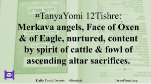 #TanyaYomi 12Tishre: Merkava angels, Face of Oxen & of Eagle, nurtured, content by spirit of cattle & fowl of ascending altar sacrifices.