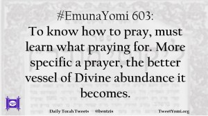 #EmunaYomi 603: To know how to pray, must learn what praying for. More specific a prayer, the better vessel of Divine abundance it becomes.