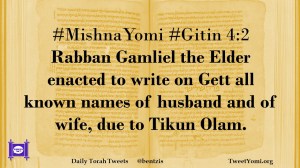 #MishnaYomi #Gitin 4:2 Rabban Gamliel the Elder enacted to write on Gett all known names of husband and of wife, due to Tikun Olam.