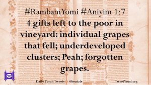#RambamYomi #Aniyim 1:7 4 gifts left to the poor in vineyard: individual grapes that fell; underdeveloped clusters; Peah; forgotten grapes.