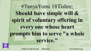 #TanyaYomi 18Tishre: Should have simple will & spirit of voluntary offering in every one whose heart prompts him to serve “a whole service.”