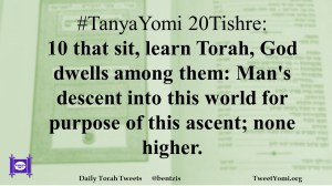 #TanyaYomi 20Tishre: 10 that sit, learn Torah, God dwells among them: Man’s descent into this world for purpose of this ascent; none higher.